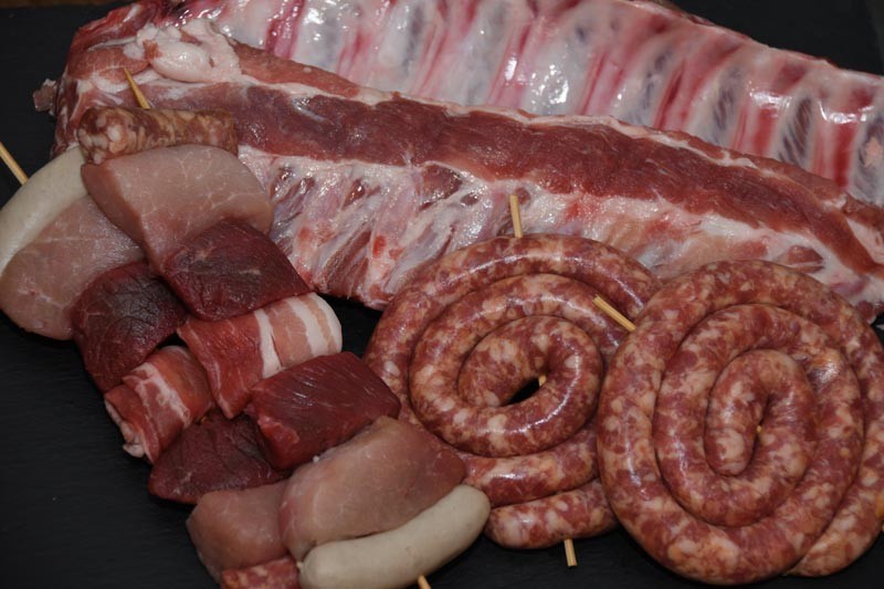 Per preparare la nostra luganighetta, immancabile in ogni grigliata, utilizziamo la carne ottenuta dalle refilature delle pancette, dal collo e dalle spalle del maiale.
