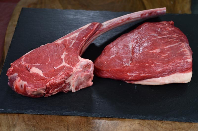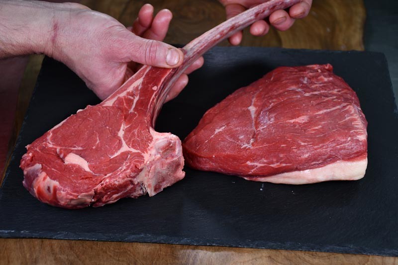 L’osso, che viene lasciato attaccato al Ribeye di manzo, rende la forma di questo taglio molto scenografico.